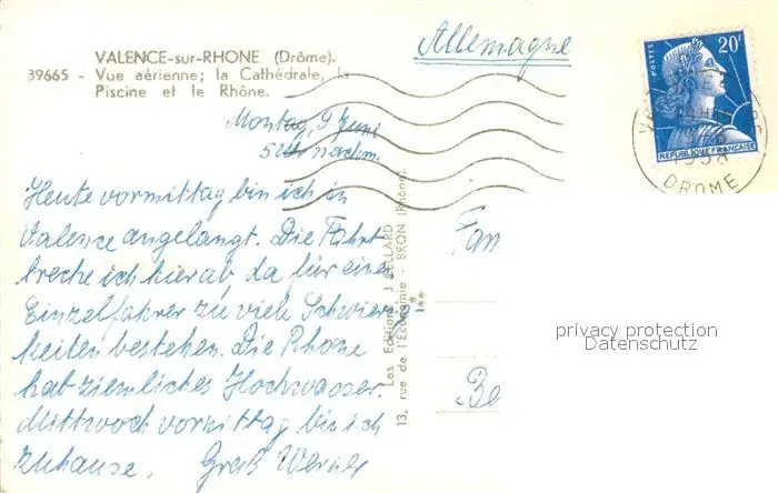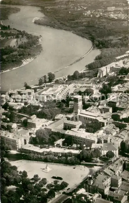 Valence_Drome Vue aerienne la Cathedrale la Piscine et le Rhone Valence_Drome postalisch gelaufen 1958 Erhaltung siehe scans [WerneD78] WernPID7