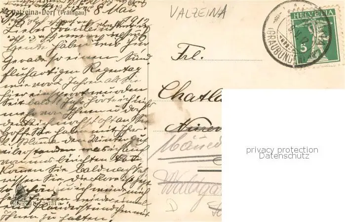 Valzeina_GR Panorama mit Kirche postalisch gelaufen 1912 Erhaltung siehe scans [FriedD77] Frierer