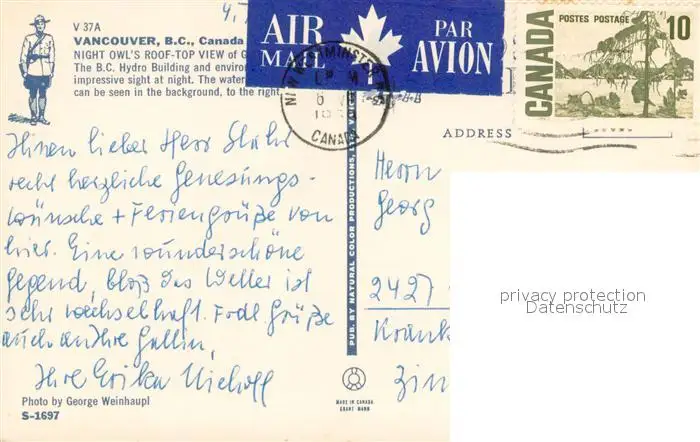 Vancouver_BC_Canada Night Owls Roof Top view The BC Hydro Building postalisch gelaufen nach 1965 Erhaltung siehe scans [WerneD78] WernPID7