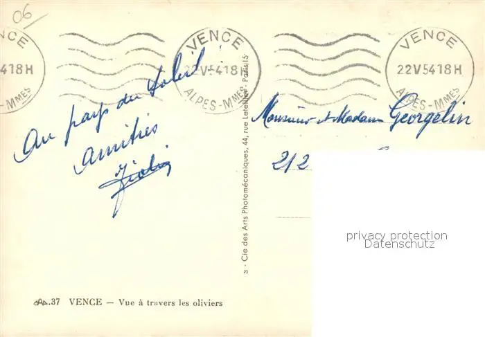 Vence-la-Jolie Vue a travers les oliviers Vence-la-Jolie postalisch gelaufen 1954 Erhaltung siehe scans [WerneD78] WernPID7