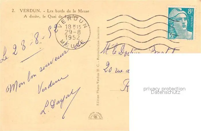 Verdun_Meuse Les bords de la Meuse Quai de Londres Verdun Meuse postalisch gelaufen 1952 Erhaltung siehe scans [FriedD77] Frierer