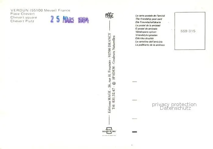 Verdun_Meuse Place Chevert Verdun Meuse postalisch nicht gelaufen 1984 Erhaltung siehe scans [WerneD78] WernPID7