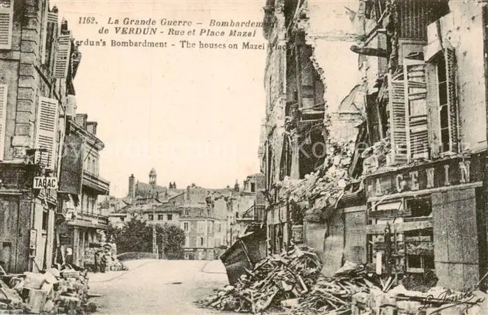 Verdun__55_Meuse Bombardement Verdun Rue et Place Mazel postalisch nicht gelaufen bis 1920 Erhaltung siehe scans [WerneD78] WernPID7