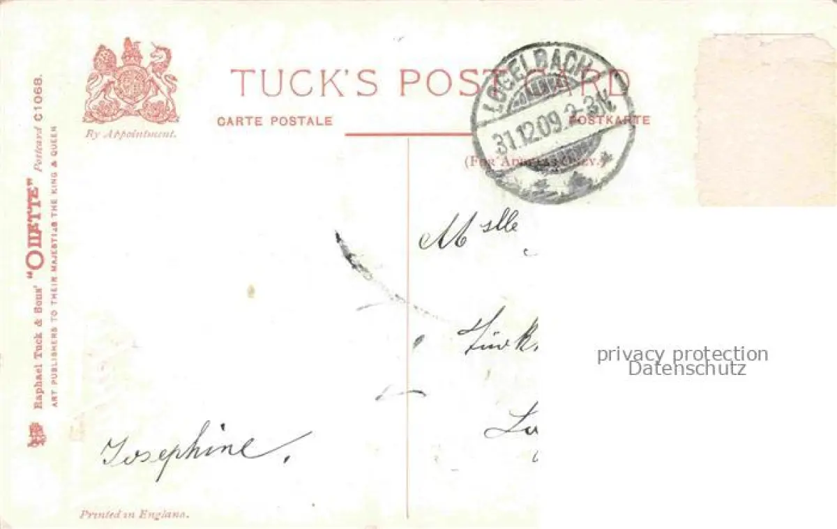 Verlag TUCK Raphael et Fils Nr. C 1068 Maedchen Prosit Neujahr Nouvelle Annee Litho postalisch gelaufen Erhaltung siehe scans [SanaeD93] alte Postkarte Sana Katcode 22080000002300