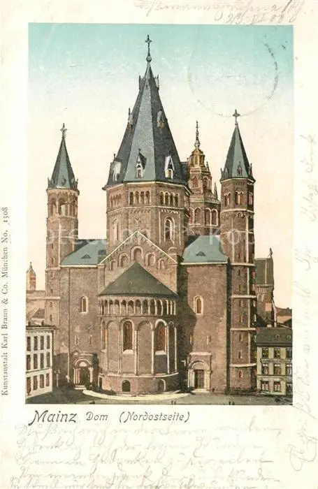 Verlag_Braun_Nr. 1308 Mainz Dom Goldfenster-Karte Verlag_Braun_Nr. postalisch gelaufen 1900 Erhaltung siehe scans [PaolaD17] PaolPID1