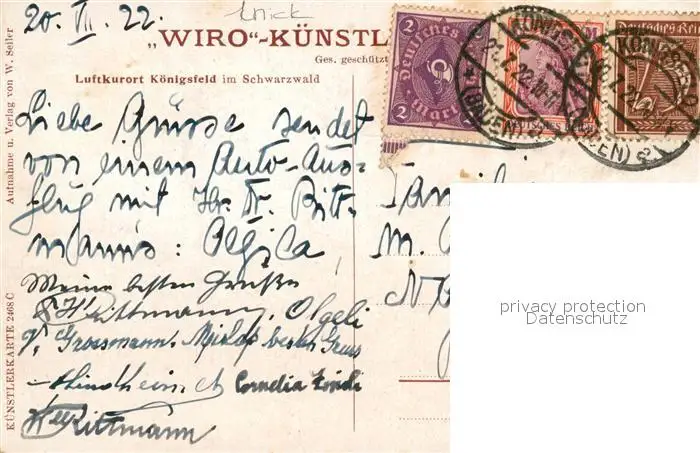 Verlag_WIRO_Wiedemann_Nr. 2468 C Koenigsfeld Schwarzwald Verlag_WIRO_Wiedemann_Nr. postalisch gelaufen 1922 Erhaltung siehe scans [PaolaD17] PaolPID1