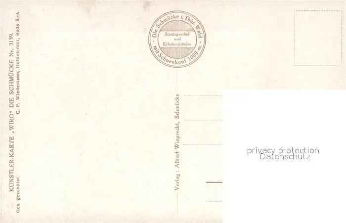 Verlag_WIRO_Wiedemann_Nr. 3139 Schneekopf Verlag_WIRO_Wiedemann_Nr. postalisch nicht gelaufen bis 1920 Erhaltung siehe scans [PaolaD17] PaolPID1