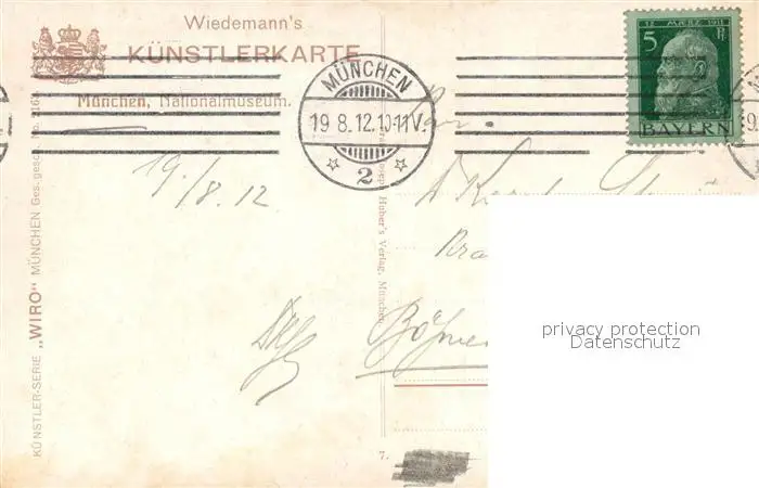 Verlag_Wiedemann_WIRO_Nr. 2163 Muenchen Nationalmuseum Verlag_Wiedemann_WIRO_Nr. postalisch gelaufen 1912 Erhaltung siehe scans [PaolaD17] PaolPID1