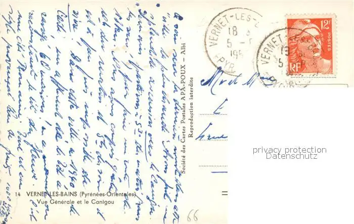 Vernet-les-Bains Vue générale et le Canigou Pyrénées Vernet-les-Bains postalisch gelaufen 1921-1965 Erhaltung siehe scans [FriedD77] Frierer