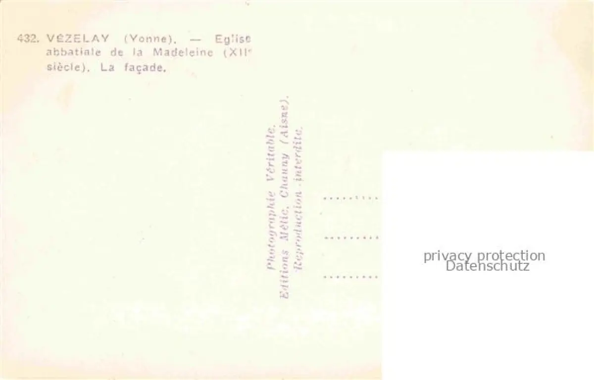 Vezelay Avallon 89 Yonne Eglise abbatiale de la Madeleine XIIe siècle Facade postalisch nicht gelaufen Erhaltung siehe scans [FriedD77]