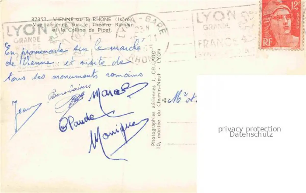 14102330 Vienne-sur-le-Rhone 38 Isere Vue aerienne sur le Theatre Romain et la Colline de Pipet postalisch gelaufen Erhaltung siehe scans [WerneD78] carte postale Wern Katcode 11170038338544