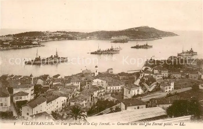 Villefranche-sur-Mer Vue générale et le Cap Ferrat Bateaux Villefranche-sur-Mer postalisch nicht gelaufen bis 1920 Erhaltung siehe scans [FriedD77] Frierer