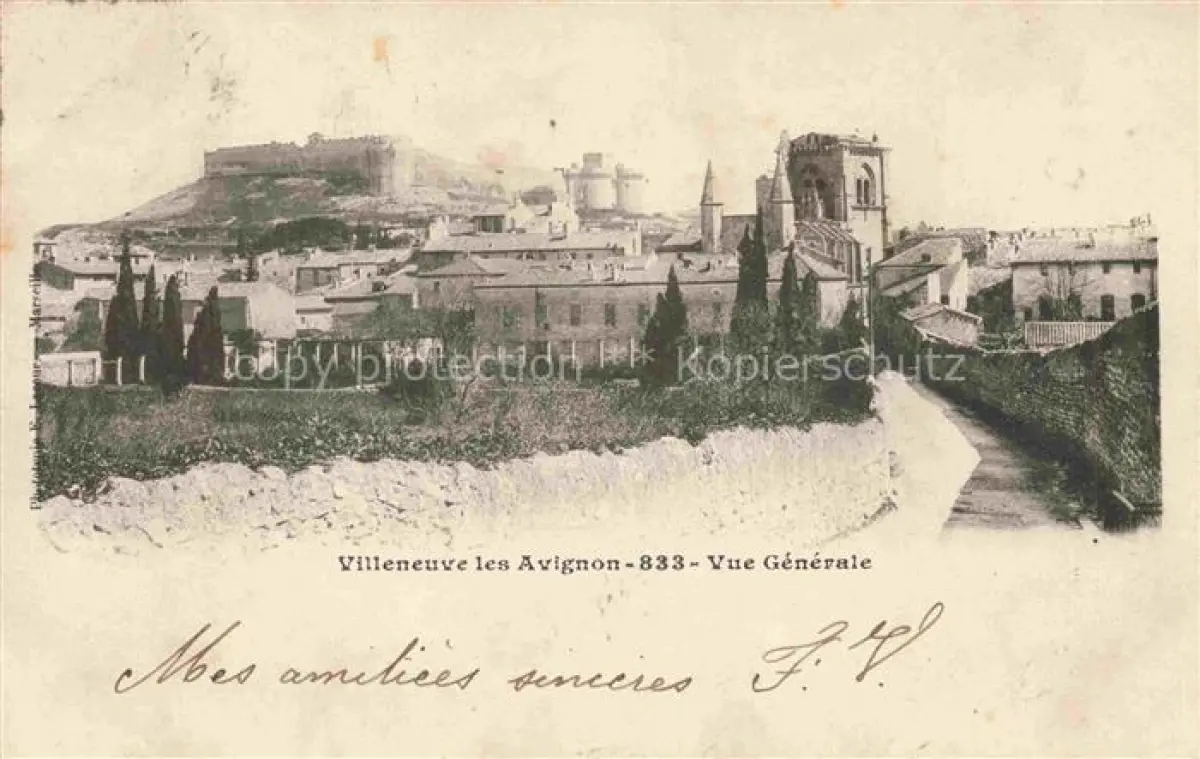 14108204 Villeneuve-les-Avignon NIMES 30 Gard Vue générale postalisch gelaufen Erhaltung siehe scans [FriedD77] carte postale Frie Katcode 11170030230351
