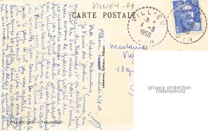 Villieu-Loyes-Mollon_01_Ain Vue générale postalisch gelaufen 1950 Erhaltung siehe scans [FriedD77] Frierer