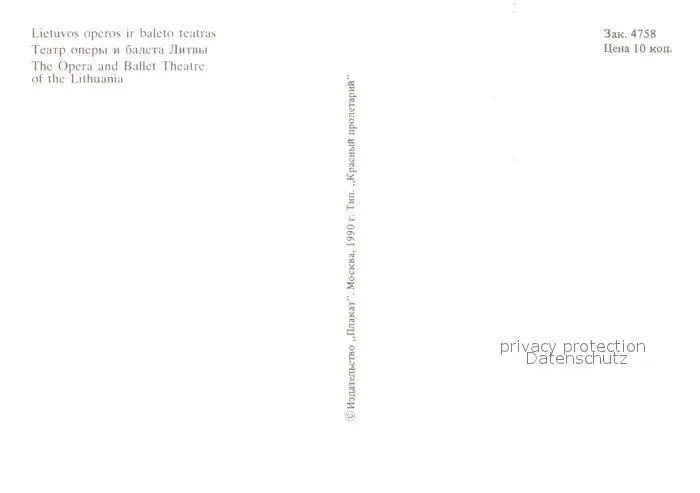 Vilnius Oper Ballett Theater Vilnius postalisch nicht gelaufen nach 1965 Erhaltung siehe scans [KathaD81] Kathoren