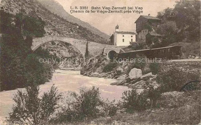 alte Postkarte Visp Viege VS Eisenbahn Visp-Zermatt Partie am Fluss Bruecke postalisch gelaufen Erhaltung siehe scans [FriedD77]