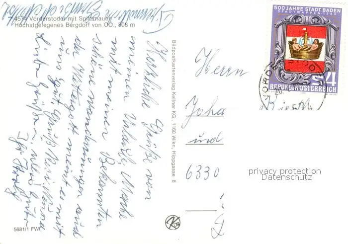 Vorderstoder mit Spitzmauer Vorderstoder postalisch gelaufen 1980 Erhaltung siehe scans [LiesaD40] LiesID40