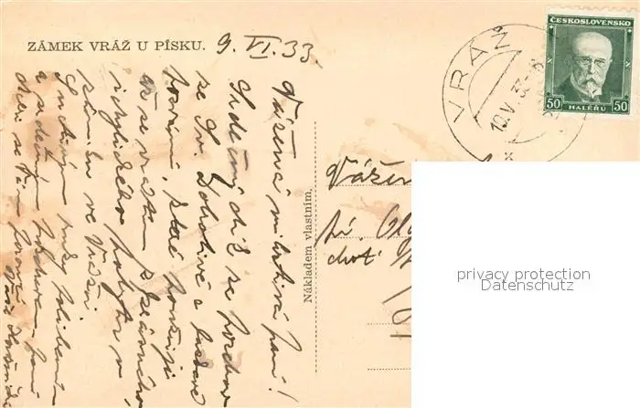 Vraz_u_Pisku Zamek Vraz_u_Pisku postalisch gelaufen 1933 Erhaltung siehe scans [LiesaD40] LiesID40