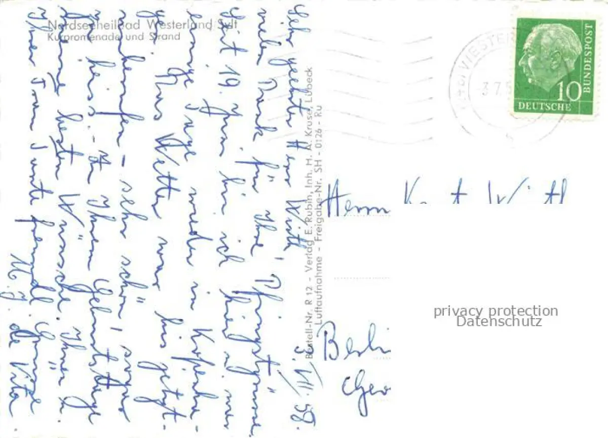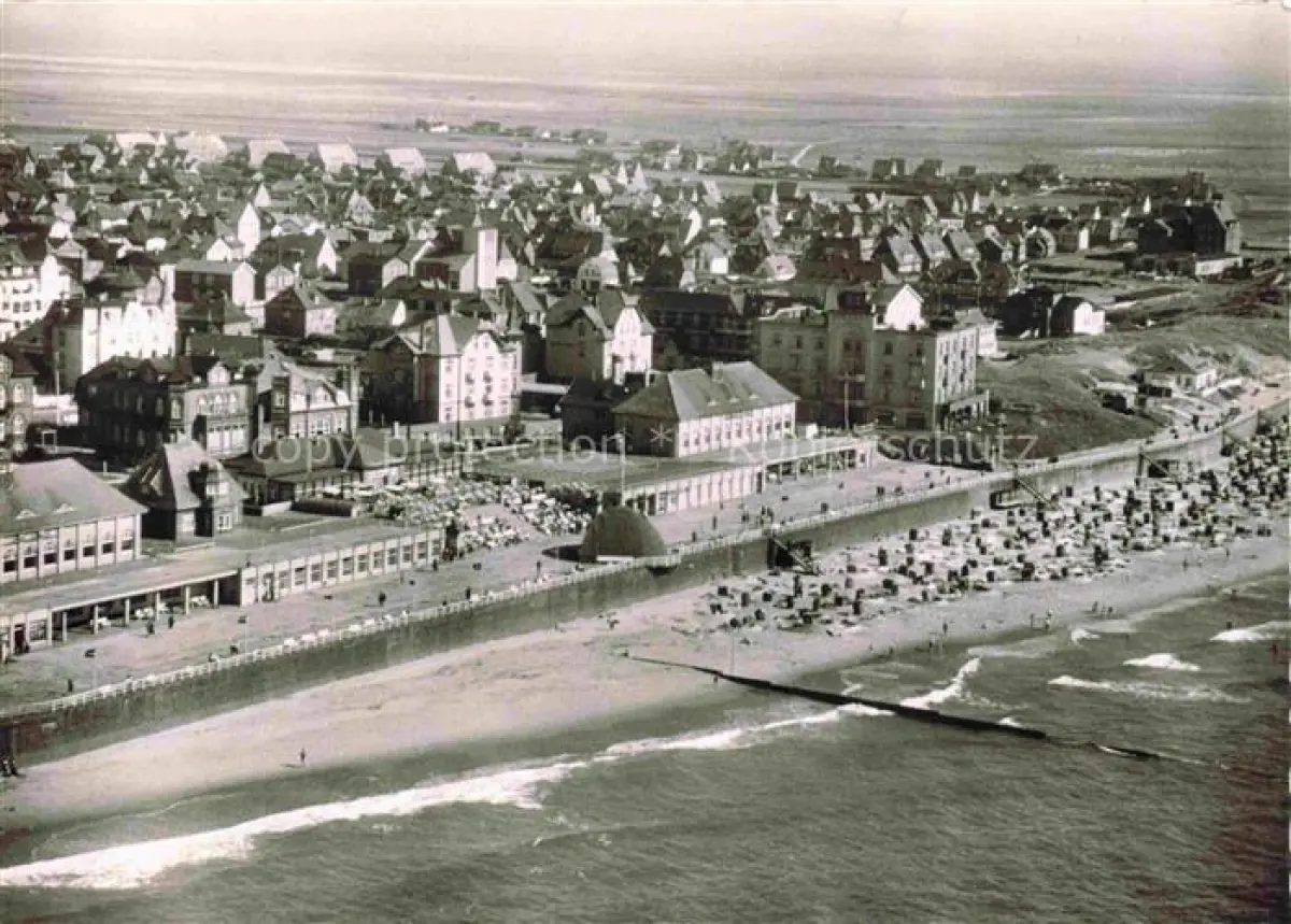 WESTERLAND Sylt Kurpromenade und Strand postalisch gelaufen Fliegeraufnahme Erhaltung siehe scans [FriedD77] Fliegeraufnahme alte Postkarte Frie Katcode 11110001054151