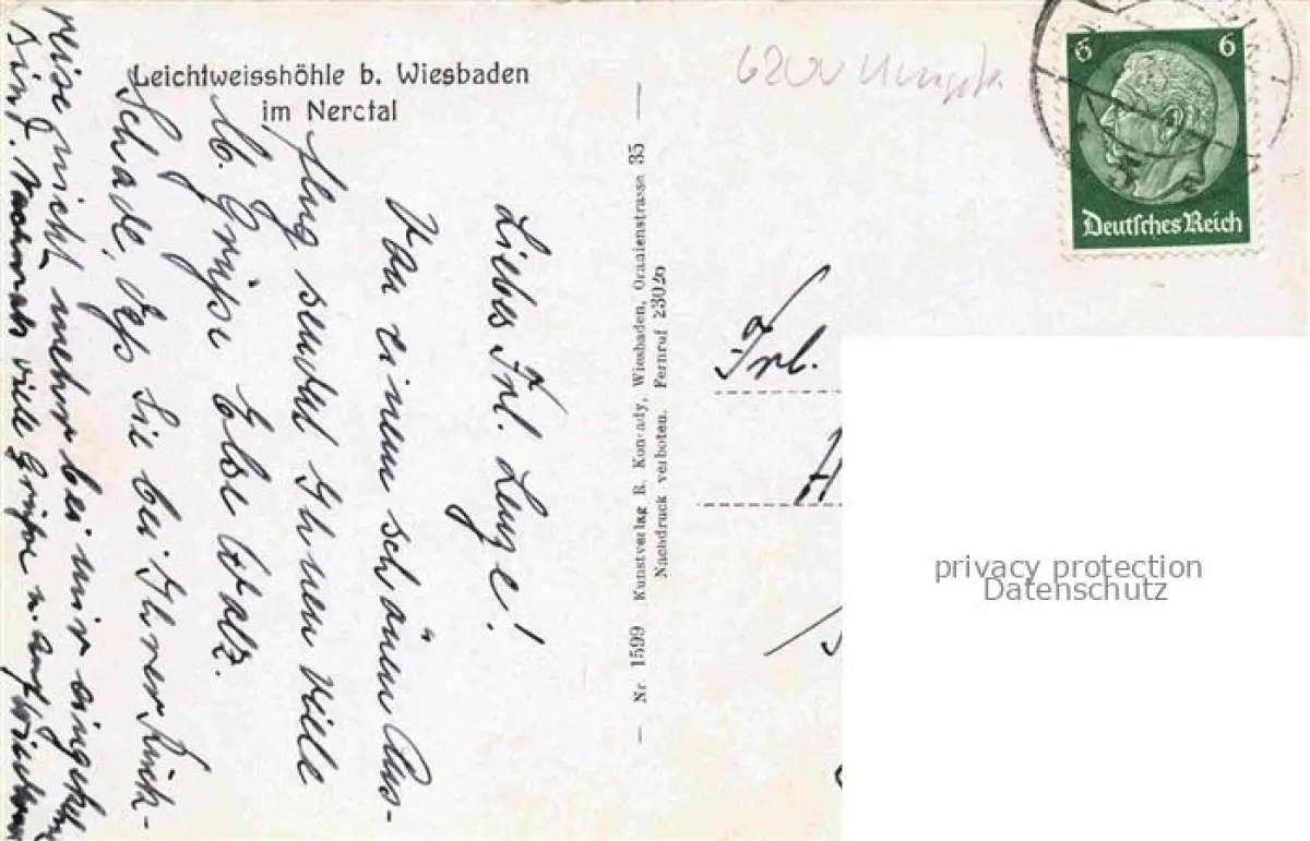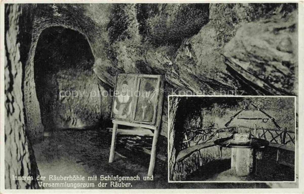 WIESBADEN Leichtweisshoehle Inneres der Raeuberhoehle mit Schlafgemach und Versammlungsraum der Raeuber postalisch gelaufen Erhaltung siehe scans [WerneD78] alte Postkarte Wern Katcode 11110006414000