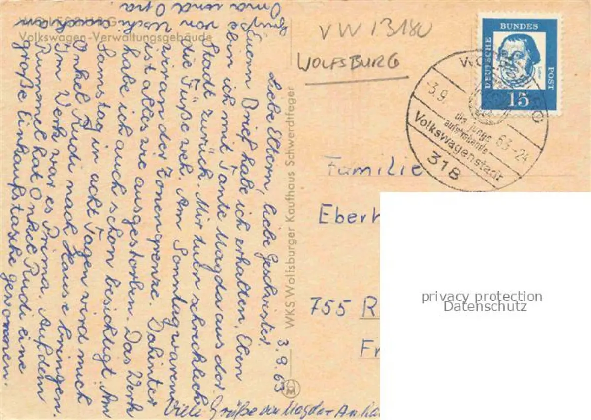 alte Postkarte WOLFSBURG VW Verwaltungsgebaeude postalisch gelaufen Erhaltung siehe scans [WerneD78]
