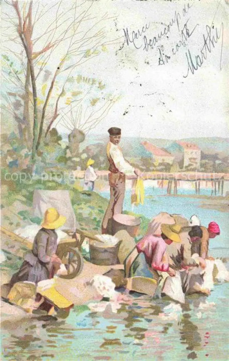 74117257 Waescherei Lavandaie am Ufer Litho postalisch nicht gelaufen Erhaltung siehe scans [SanaeD93] Sana Katcode 22060