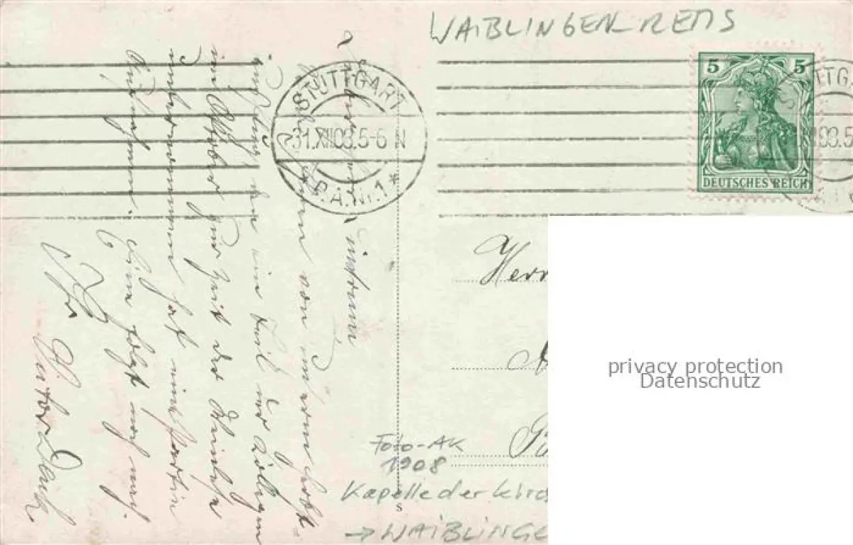 alte Postkarte Waiblingen Rems Rems-Murr-Kreis BW Gruppenbild vor der Kirche postalisch gelaufen Erhaltung siehe scans [FriedD77]
