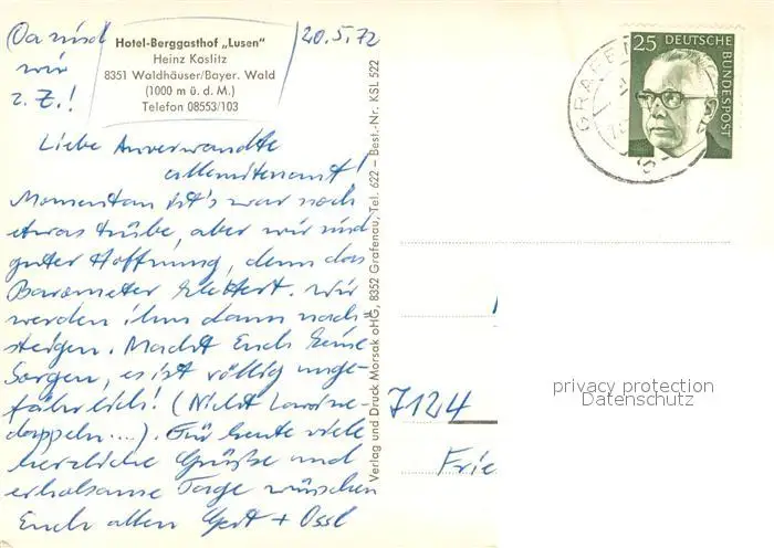Waldhaeuser_Neuschoenau Hotel Berggasthof Lusen Waldhaeuser Neuschoenau postalisch gelaufen 1972 Erhaltung siehe scans [WerneD78] WernPID7