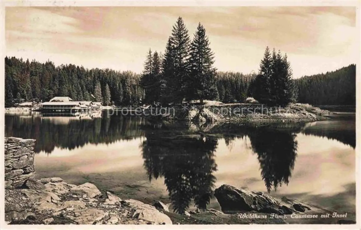 alte Postkarte Waldhaus Flims GR Caumasee mit Insel postalisch gelaufen Erhaltung siehe scans [WerneD78]