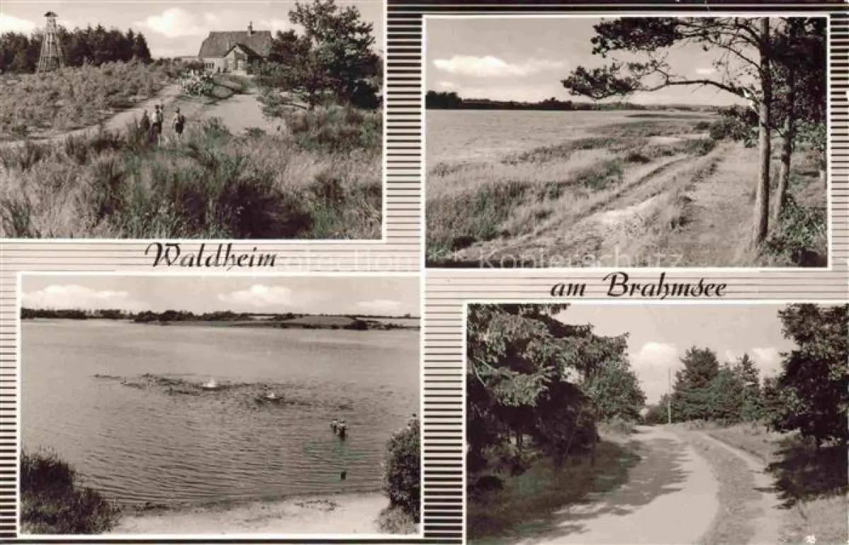 alte Postkarte Waldheim Brahmsee Ev Jugendheim am Brahmsee Waldweg postalisch gelaufen Erhaltung siehe scans [WerneD78]