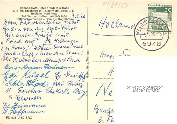 Waldmichelbach Sonnen Cafe Kreidacher Hoehe Gastraeume Panorama Waldmichelbach postalisch gelaufen 1970 Erhaltung siehe scans [WerneD78] WernPID7