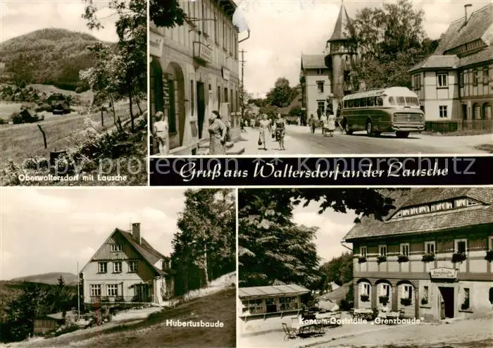 AK / Ansichtskarte Waltersdorf_Bad_Schandau Oberwaltersdorf mit Lausche Strassenpartie Hubertusbaude Konsum Gaststaette Grenzbaude Waltersdorf_Bad_Schandau
