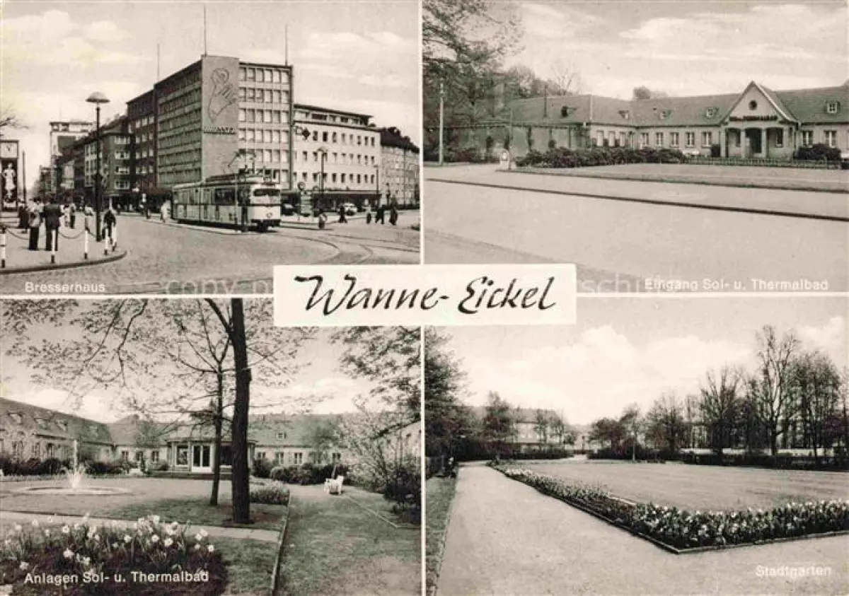 AK / Ansichtskarte Wanne-Eickel HERNE Termalbad Stadtgarten Bresserhaus Strassenbahn