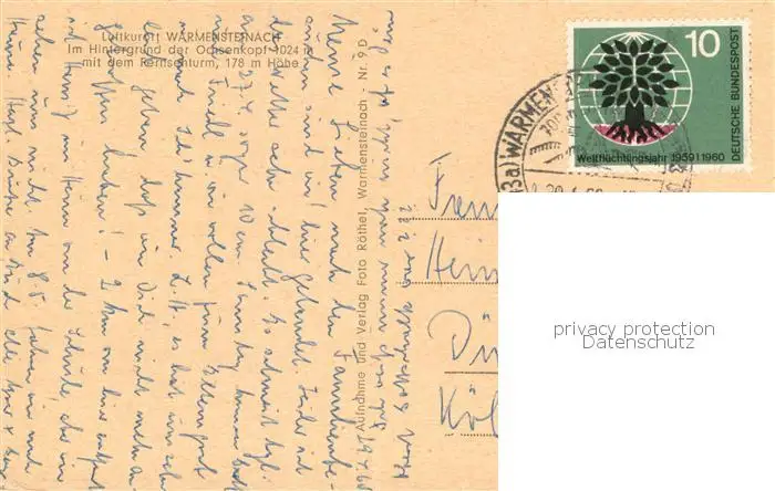 Warmensteinach Fliegeraufnahme mit Ochsenkopf und Fernsehturm Warmensteinach postalisch gelaufen 1960 Erhaltung siehe scans [WerneD78] WernPID7