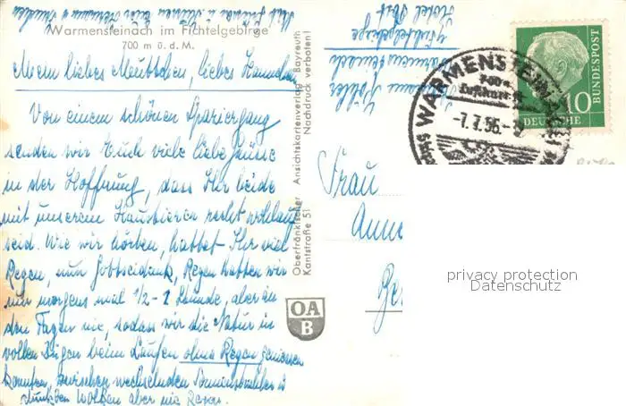 Warmensteinach Panorama Warmensteinach postalisch gelaufen 1956 Erhaltung siehe scans [WerneD78] WernPID7