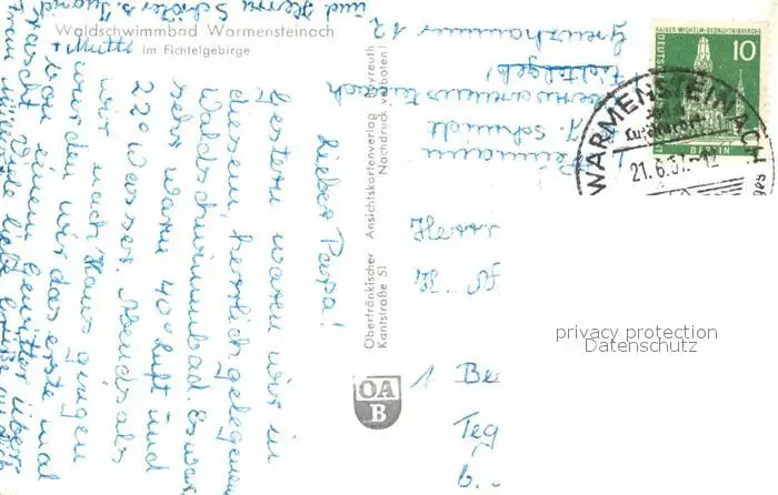 Warmensteinach Waldschwimmbad Warmensteinach postalisch gelaufen 1921-1965 Erhaltung siehe scans [KathaD81] Kathoren