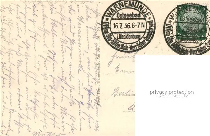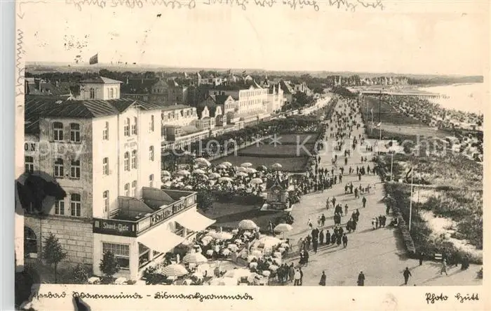 Warnemuende_Ostseebad Bismarckpromenade Strand Warnemuende_Ostseebad postalisch gelaufen 1936 Erhaltung siehe scans [FriedD77] Frierer