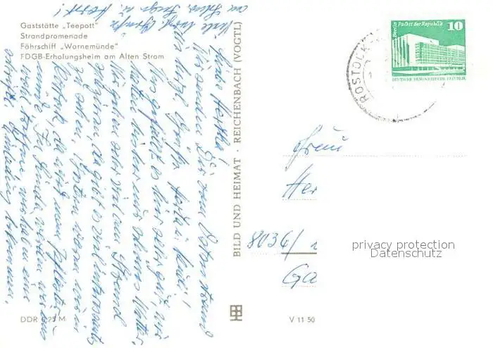 Warnemuende_Ostseebad Gaststaette Teepott Strandpromenade Faehrschiff Warnemuende FDGB Erholungsheim Am Alten Strom Warnemuende_Ostseebad postalisch gelaufen 1981 Erhaltung siehe scans [FriedD77] Frierer