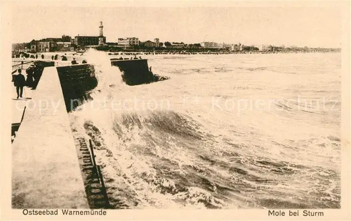 Warnemuende_Ostseebad Mole im Sturm Warnemuende_Ostseebad postalisch nicht gelaufen 1921-1965 Erhaltung siehe scans [WerneD78] WernPID7