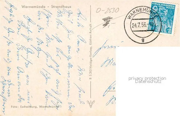 Warnemuende_Ostseebad Strandhaus Warnemuende_Ostseebad postalisch gelaufen 1956 Erhaltung siehe scans [FriedD77] Frierer