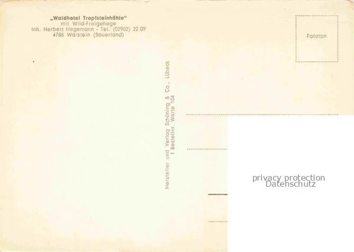 Warstein NRW Waldhotel Tropfsteinhoehle postalisch nicht gelaufen Erhaltung siehe scans [IrynaD87] Iryn Katcode 11110005974044