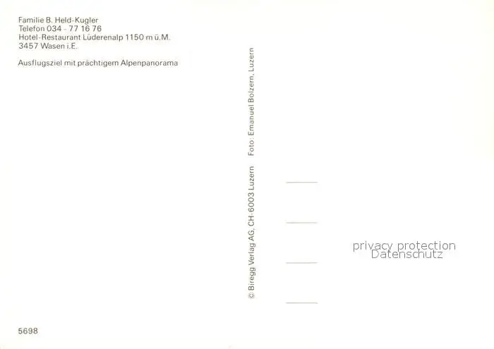 Wasen_Emmental_BE Hotel Restaurant Luederenalp Wasen_Emmental_BE postalisch nicht gelaufen nach 1965 Erhaltung siehe scans [FriedD77] Frierer