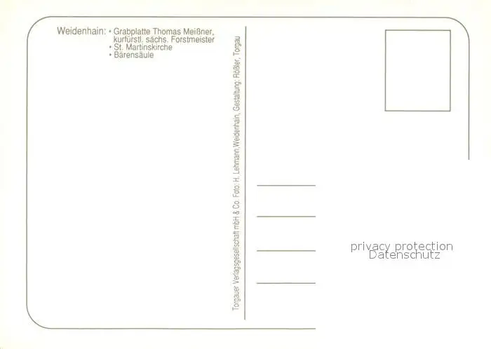Weidenhain Grabplatte Thomas Meissnser St. Martinskirche Weidenhain postalisch nicht gelaufen nach 1965 Erhaltung siehe scans [NatalD47] NataID47