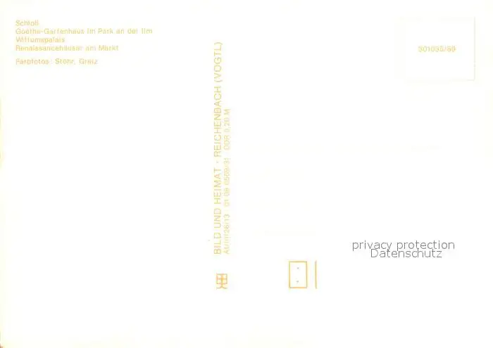 Weimar_Lahn Schloss Goethe Gartenhaus Park an der Ilm Wittumspalais Renaissancehaeuser am Markt Weimar_Lahn postalisch nicht gelaufen 1989 Erhaltung siehe scans [FriedD77] Frierer