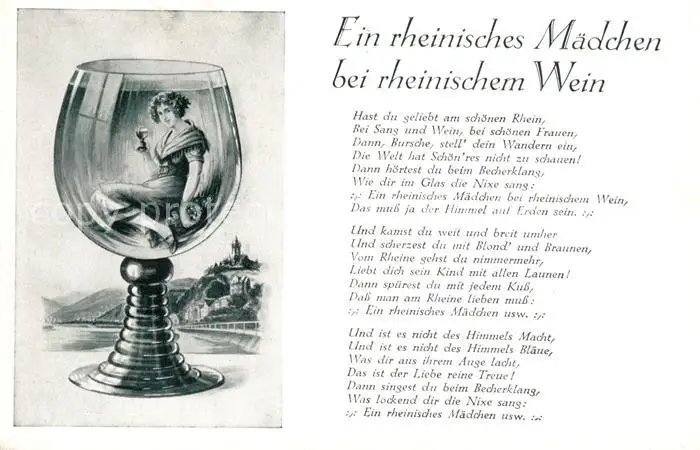 Wein Weinglas Gedicht Ein rheinisches Maedchen bei rheinischem Wein Wein postalisch nicht gelaufen 1921-1965 Erhaltung siehe scans [PaolaD17] PaolPID1