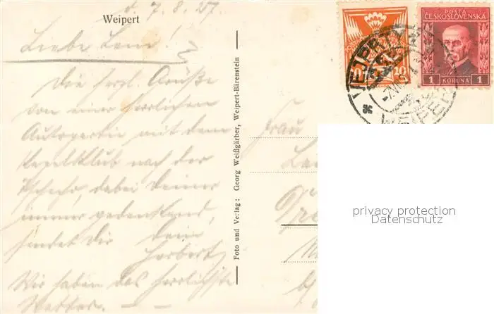 Weipert_Vejprty_CZ Teilansicht postalisch gelaufen 1927 Erhaltung siehe scans [LiesaD40] LiesID40