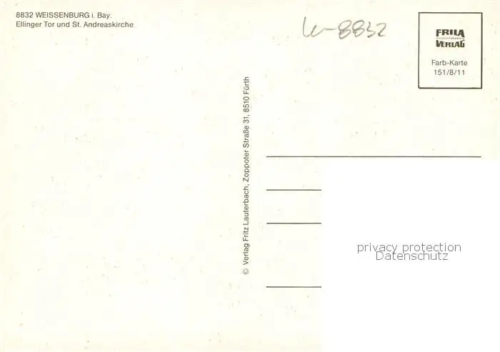 Weissenburg__Bayern Ellinger Tor und St Andreaskirche postalisch nicht gelaufen nach 1965 Erhaltung siehe scans [WerneD78] WernPID7