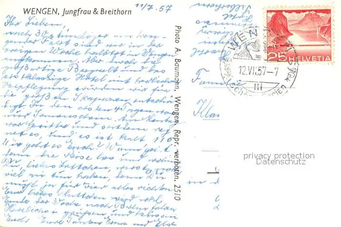 Wengen_BE Jungfrau Breithorn Panorama Wengen_BE postalisch gelaufen 1957 Erhaltung siehe scans [KathaD81] Kathoren
