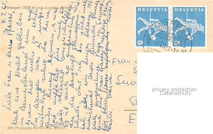 Wengen_BE Panorama mit Blick zur Jungfrau Berner Alpen Wengen_BE postalisch gelaufen 1961 Erhaltung siehe scans [FriedD77] Frierer