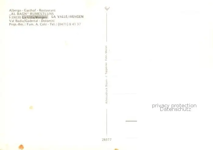 Wengen__BE Albergo Gasthof Restaurant Al Bagn Rumestluns postalisch nicht gelaufen nach 1965 Erhaltung siehe scans [FriedD77] Frierer